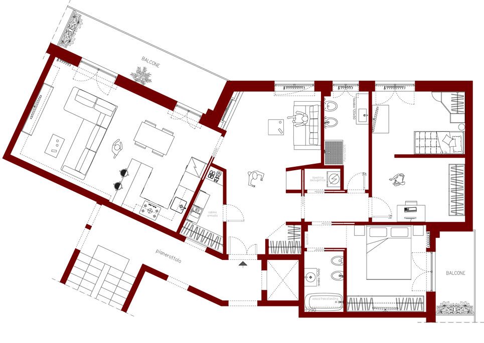 Casa in un palazzo storico del settecento nel centro della città per una coppia di professionisti. Gli spazi sono stati calibrati secondo le esigenze dei committenti: l'intervento è stato incentrato principalmente sul rifacimento degli impianti tecnologici e sulla ridefinizione degli spazi in chiave contemporanea.